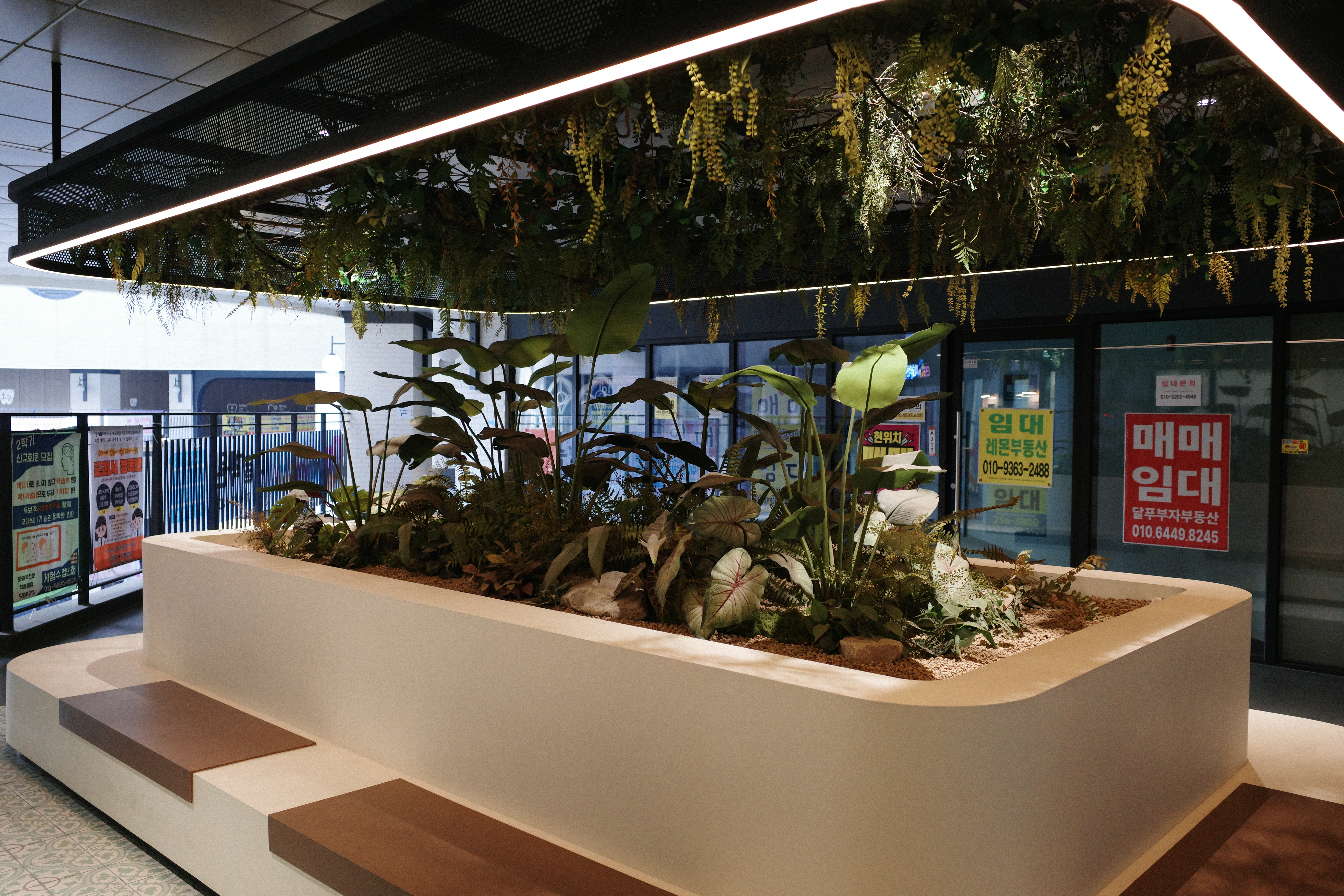 상가 중간 중간에 있는 인조 조경