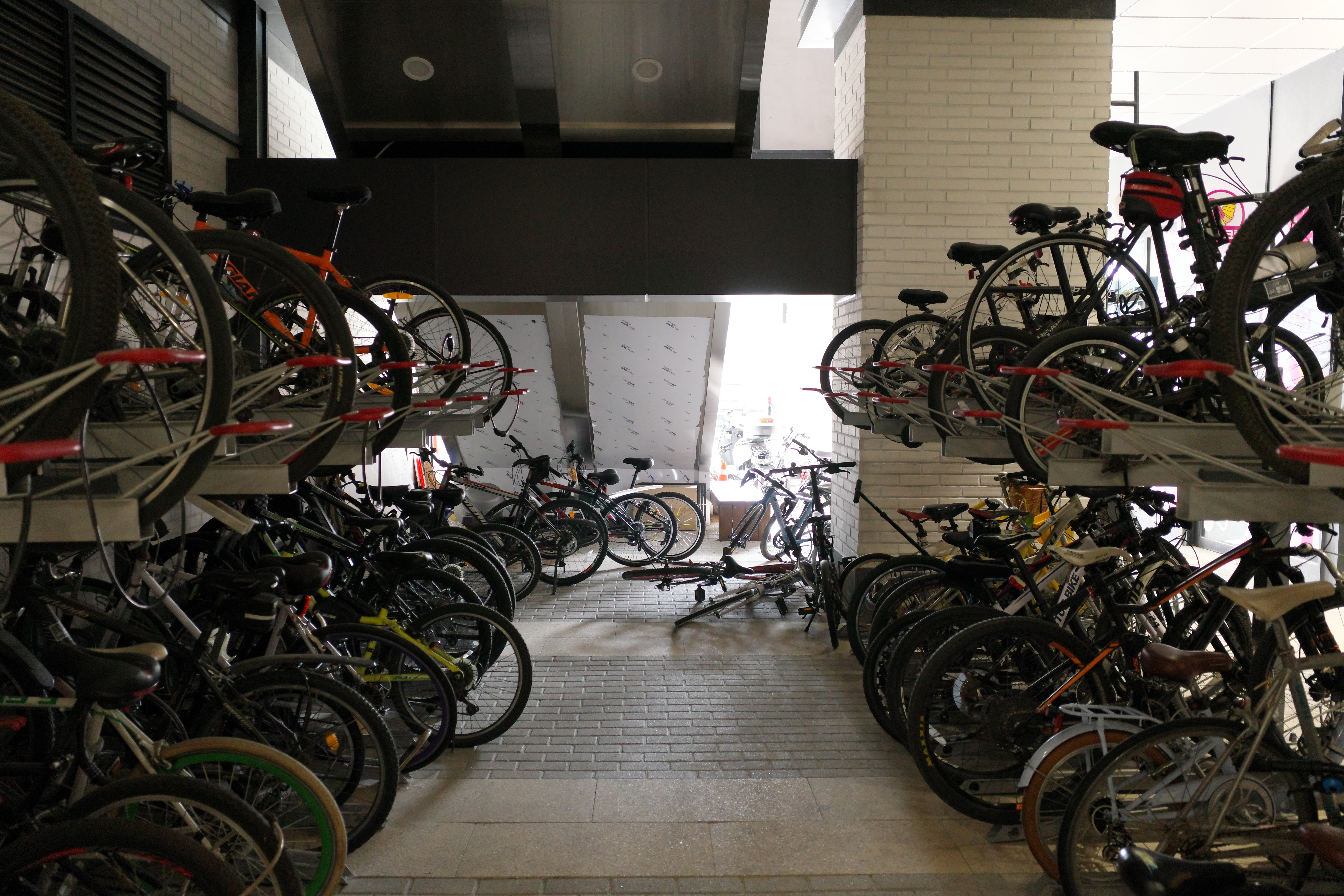 빽빽한 자전거 주차장