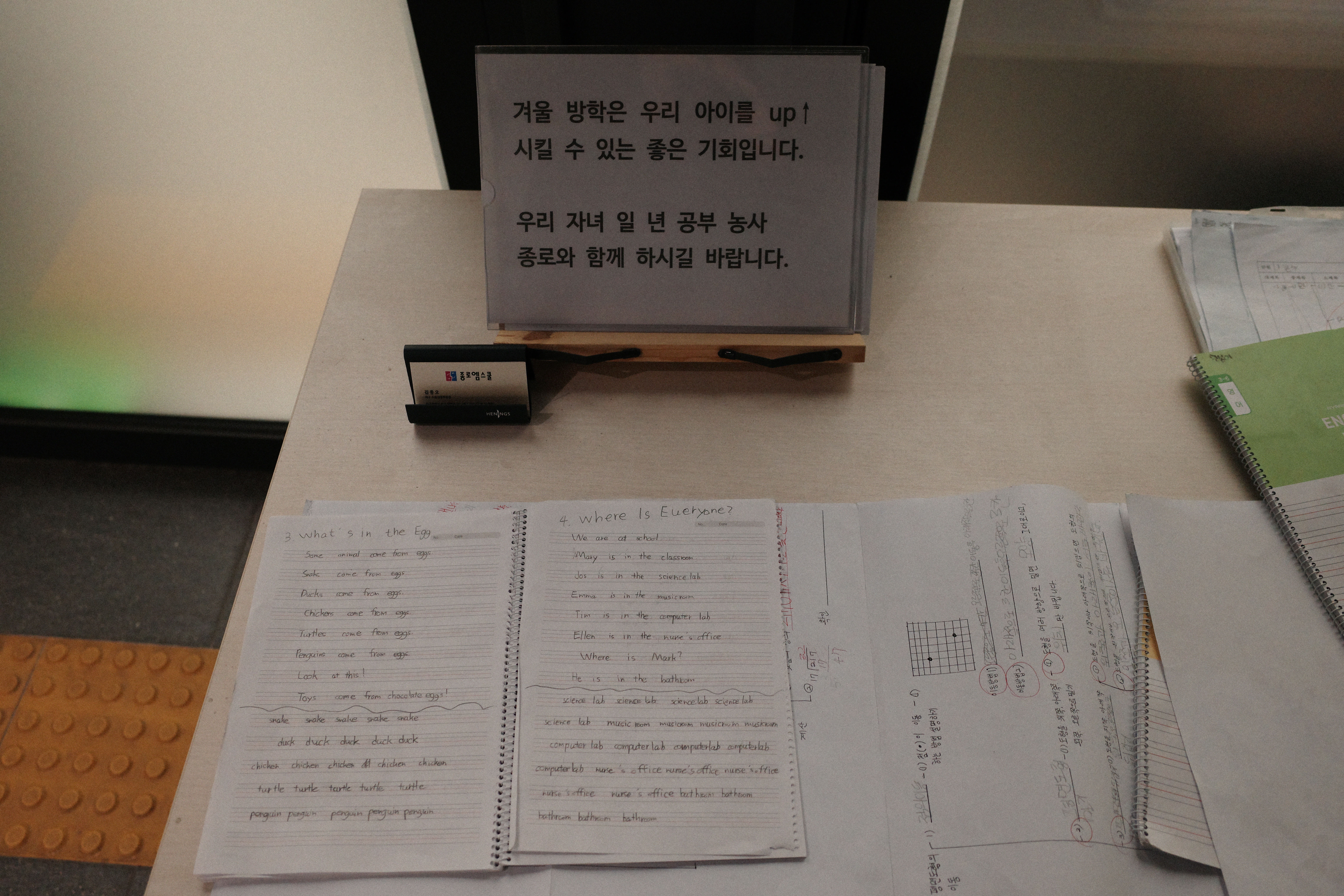 음악학원, 영어학원, 독서학원 등 다양한 학원이 있다.