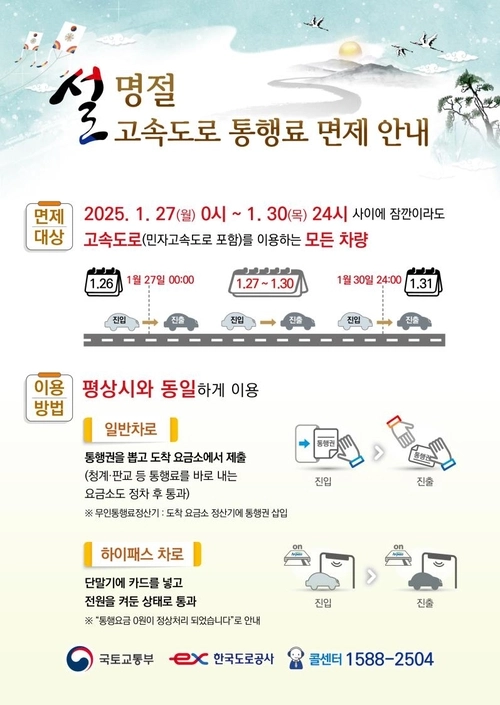설 연휴 고속도로 통행료 면제 언제부터?